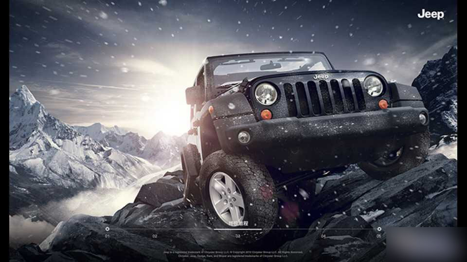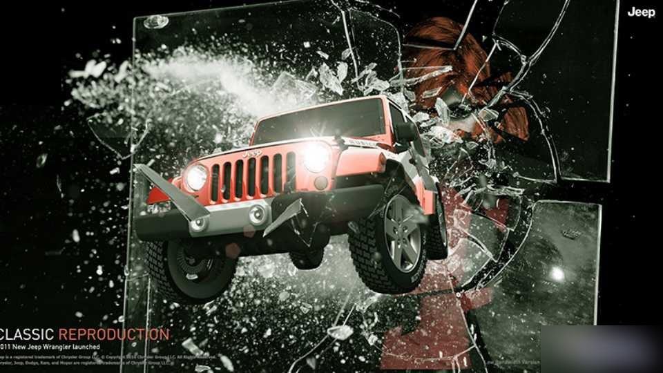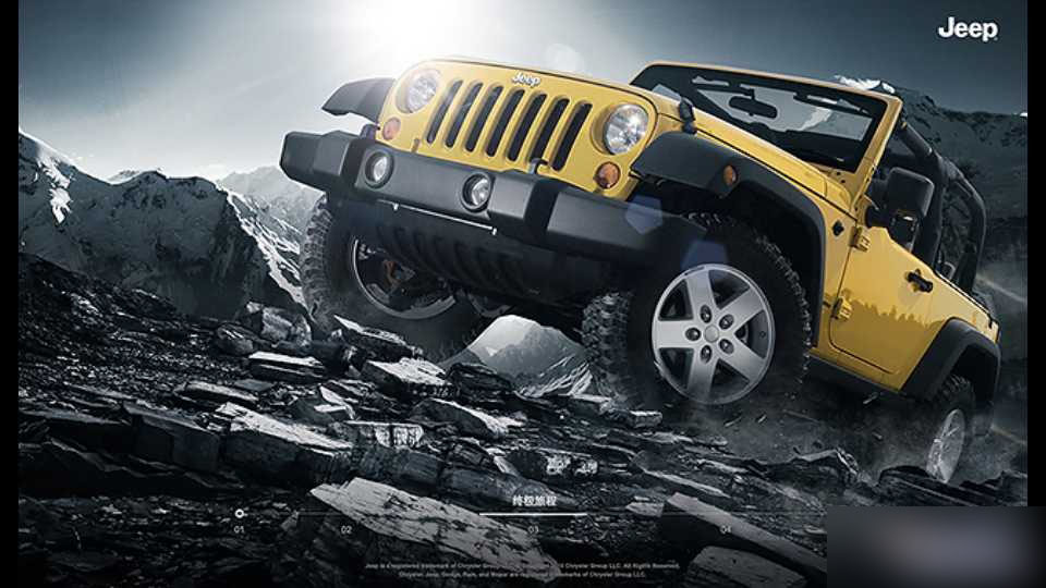 这个是2009年的作品,这个是给西安飞机制造厂做的一个企业官网,当然我后期进行了重新的包装。这个作品是2009年做的。2010年的时候,我去了a4a,服务Jeep,那是我第一次参与这种国际化的品牌。我的作品当中那几个稿子都是那时候做出来的,因为flash的普及,当时特别流行这种flash互动网站。我也是第一次服务这种国际性项目,当时我是吉普组的组长,压力特别大,我一直在思考如何做一个行业内从未出现过的稿子,同时,它又不超出品牌调性。好的、容易的想法肯定大家都做过,我那时候逐渐摸索出了一套自己的方法,我花了很长时间,参考了国内国外非常多品牌的一些视觉案例。看完之后,我就把它们全部毙掉,心里想着:只要是别人做过的东西,我就不会再去做。